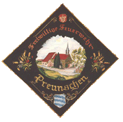 Unsere Fahne Die Preunschener Wehr hat ein Symbol der Kameradschaft, auf das sie sehr stolz ist. Es ist die Feuerwehrfahne. Denn als einzige von sechs Wehren der Gemeinde Kirchzell beschaffte man diese im Jahre 1969 aus den eigenen Finanzen. Sie zeigt auf der einen Seite die Dorfkirche und auf der anderen Seite den heiligen Florian, den Schutzpatron der Feuerwehren. Zur Fahnenweihe und auf Grund des 70-jährigen Bestehens der Freiwilligen Feuerwehr Preunschen wurde im Juli 1969 ein Fest gehalten, bei dem Pfarrer Pottler die Fahne feierlich einweihte. Zur Fahnenbraut wurde Elfriede Schäfer gewählt, die anlässlich der Übergabe ihres Fahnenbandes folgenden Prolog vortrug: Freuet Euch in dieser Stunde an des neuen Banners Pracht! Gottes Segen zu erbitten haben wir es dargebracht Dies stolze Werk soll Euch begleiten fürderhin bei Freund und Leid, stets als heeres Zeichen leuchten soll es für die Einigkeit. Eintracht ist´s, die Euch beflügelt, Auftrieb gibt zu aller Zeit, mit Ketten sie Euch fest verbindet, wenn der Ruf schallt: „Seid bereit“ Freunde, Gäste sind gekommen, zu feiern mit Euch froh im Bund. Ihre Wünsche, meine Wünsche: Gott mit Euch zu jeder Stund! Weiterhin übergaben die Festdamen ihr Fahnenband mit den nachstehenden Worten: Bereit sein, helfen, retten, ins Auge sehen der Gefahr, kämpfen an des Brandes Stätten, so kennen wir Euch Jahr um Jahr. Euer Mut und Eure Opfer geben uns Geborgenheit. Wo wär´ uns Hilfe in der Not, gäb´s Euern Einsatz nicht zu jeder Zeit. So wollen wir Euch danken, all´ die wir Euren Schutz erfahren, voll Stolz mit Euch dies Fest begehen, den Freudentag seit vielen Jahren! Die Fahne lasset uns begleiten, ist sie doch Euer treues Unterpfand. Zum Eingedenk für alle Zeiten sei verbunden mit ihr dieses Band. Von diesem Zeitpunkt ab begleitete die Fahne die Wehr bei allen Festzügen, Kirchenparaden und anderen Festlichkeiten. Zum Fahnenträger wählte man Ludwig Speth, der bei Abwesenheit durch Rainer Hermann vertreten wird. Als Fahnenbegleiter gingen Leonhard Damm und Gebhard Kühner aus der Wahl hervor, ihre Ersatzleute waren Willi Schäfer und Alfred Mehl. Heute wird die Fahne im 1982 aufgestockten Saal des Feuerwehrgerätehauses in einem dafür angefertigten Schrein aufbewahrt.